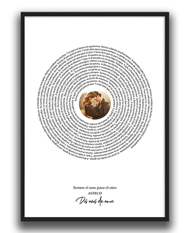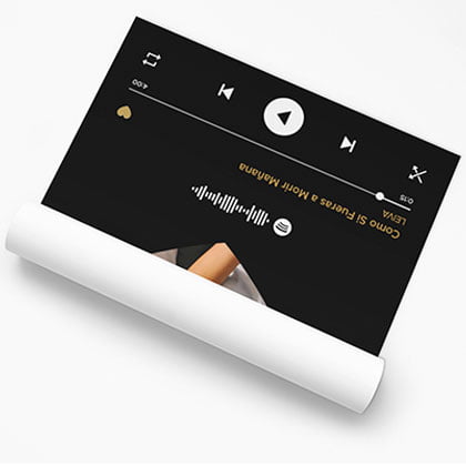 Un cuadro Spotify es un diseño de una imagen con tu persona favorita, o aquella a la que le quieras mostrar lo mucho que te importa, junto con el track de la canción que tanto os representa. Así queda para siempre, enmarcado en cualquier estancia, un recuerdo que no es solamente visual, sino que también tiene sonido, tiene olor y tiene tacto.