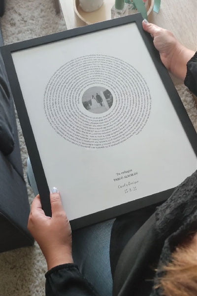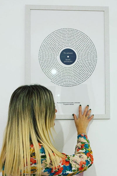 Es un cuadro con una canción especial que te permite recordar para siempre un momento único (tu primera cita, el día de tu boda, una fiesta, concierto con amigos o un viaje...).